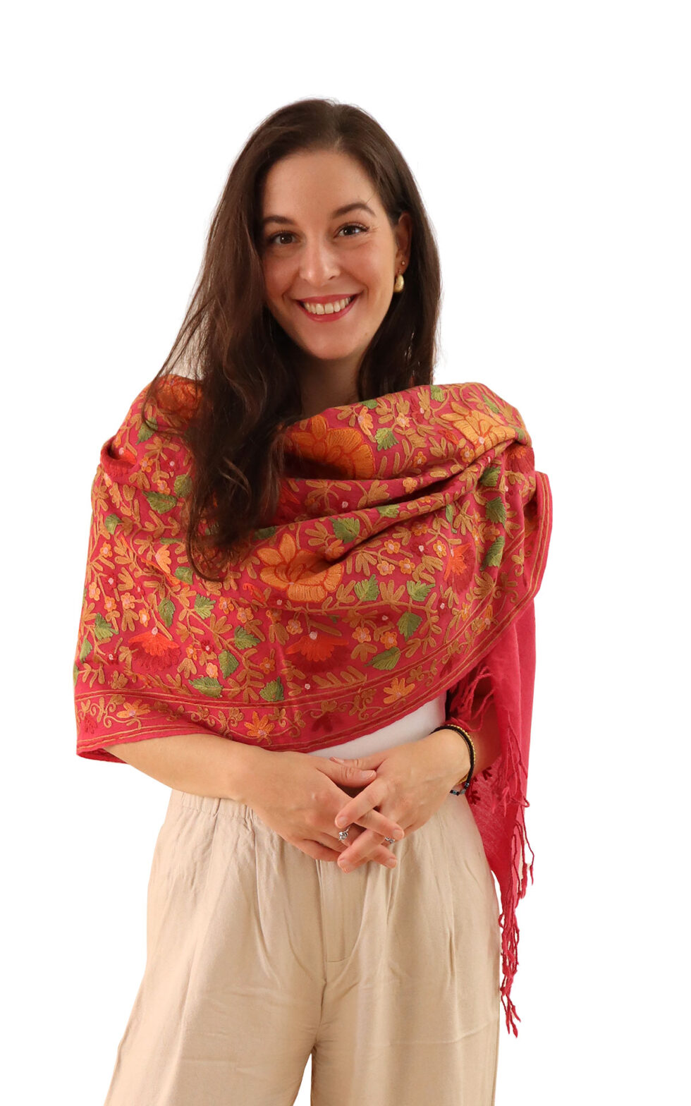 100% Fine soft wool scarf with original Kashmiri embroidery.