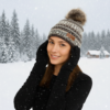 Arielle Nordic Fair Isle Beanie | Women’s Cozy Winter Knit Hat with Faux Fur Pom Pom