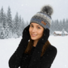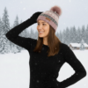 Choose from beautiful color options – brown, grey, pink, or black with vibrant accents – each paired with a matching pom pom. Perfect for skiing, snowy walks, or everyday wear, the Arielle beanie is both trendy and timeless.