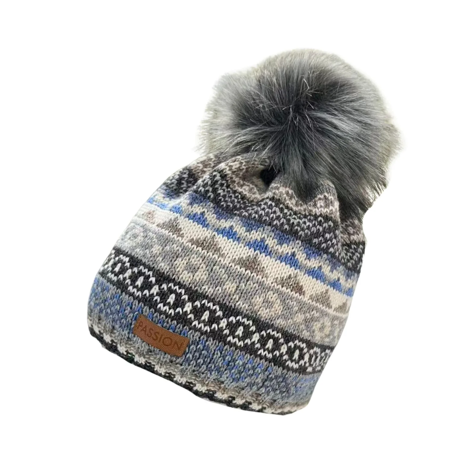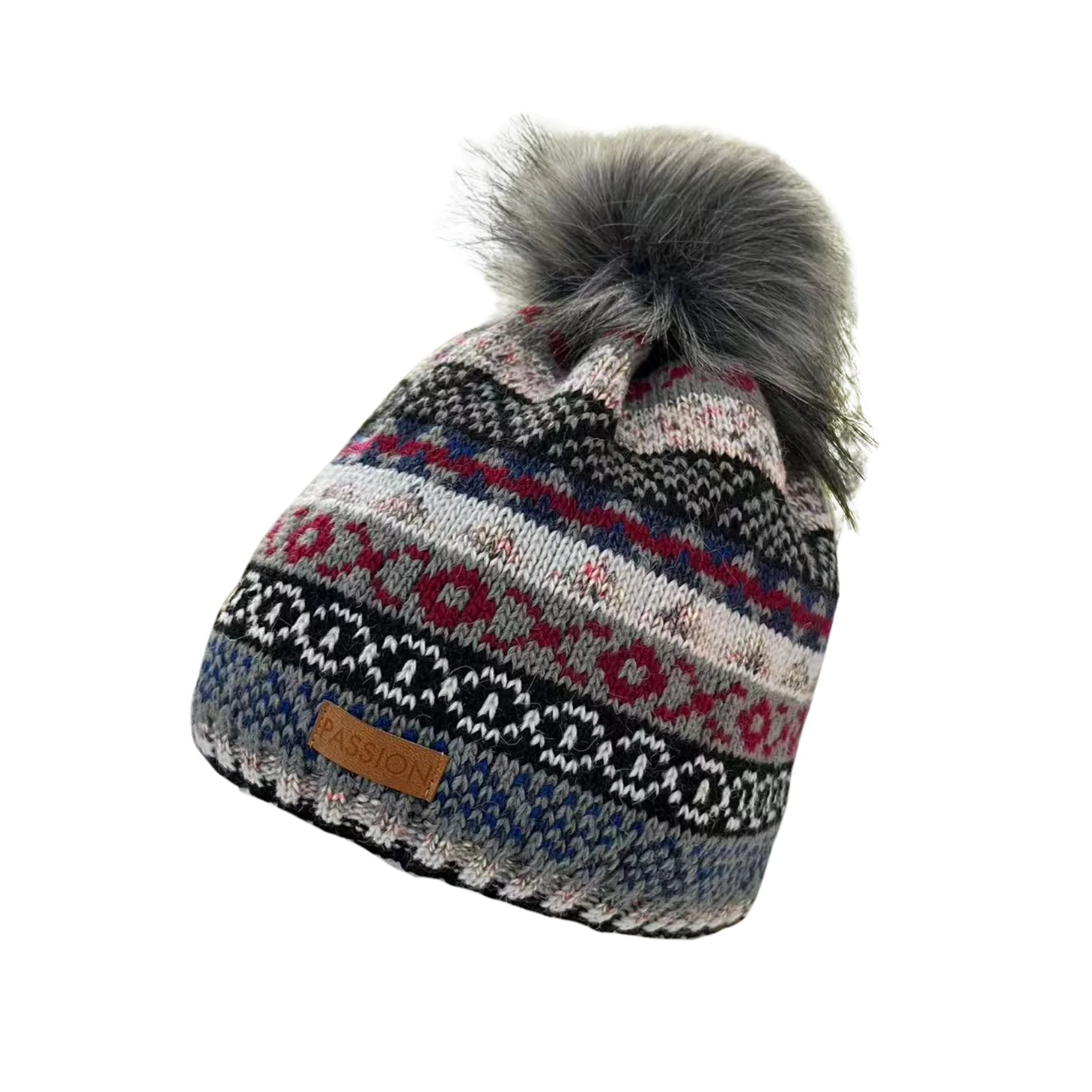 Stay warm and stylish with the Arielle Fair Isle Knitted Beanie, a cozy women’s winter hat featuring a classic Nordic pattern and a chic faux fur pom pom. Expertly crafted in the EU, this fleece-lined beanie combines comfort, warmth, and premium quality for the coldest days.