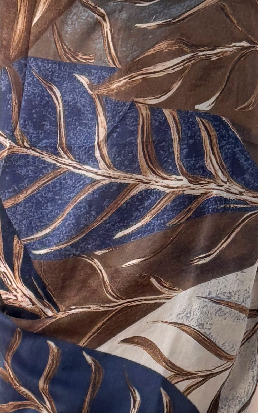 Stylish boho leaf print shawl in earthy brown and navy tones. Lightweight, soft, and versatile—wear as a scarf, wrap, or travel cover-up. Perfect for everyday wear or as a thoughtful gift for her.