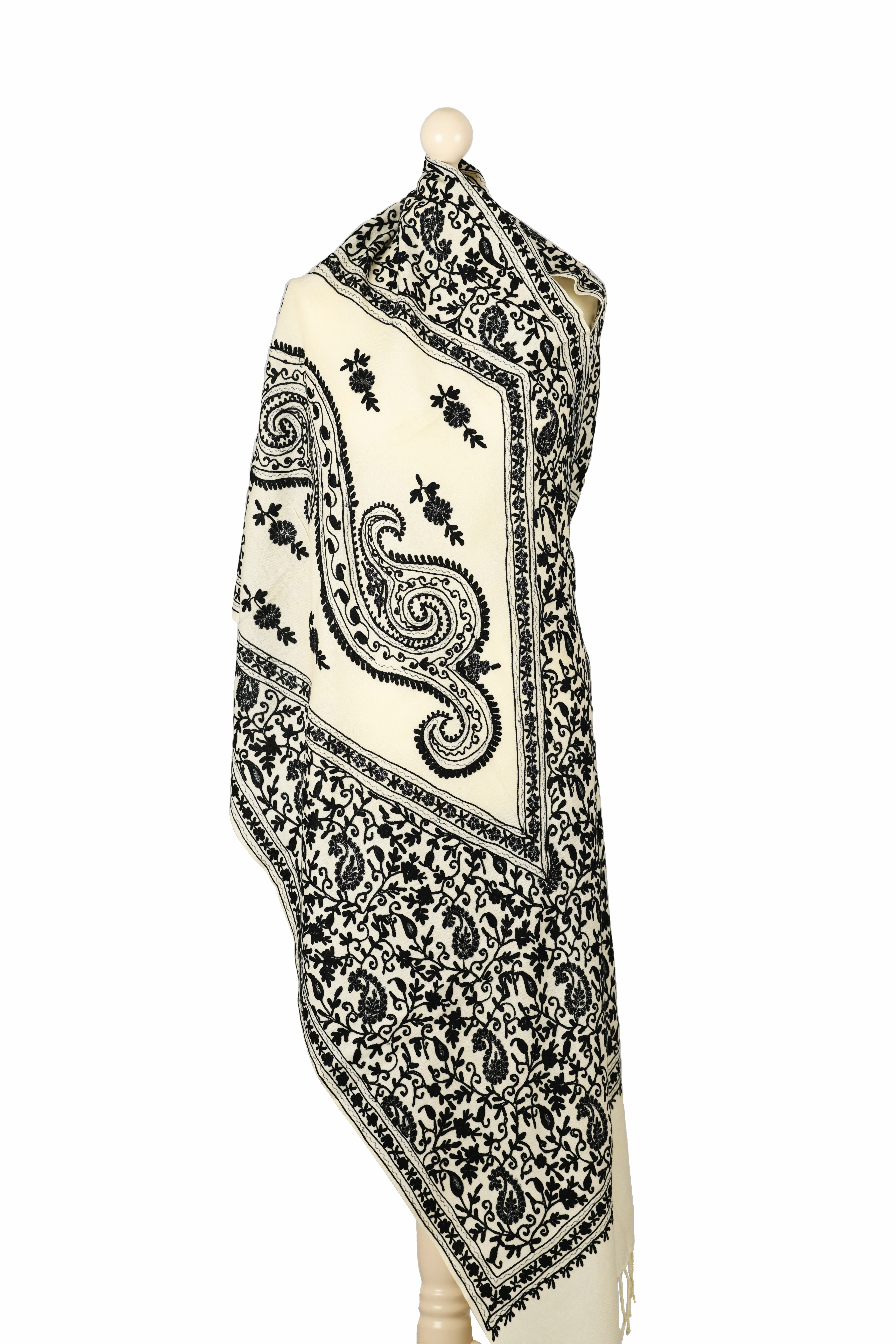 Classic Kashmiri Shawl with Black Floral Embroidery CKE-15