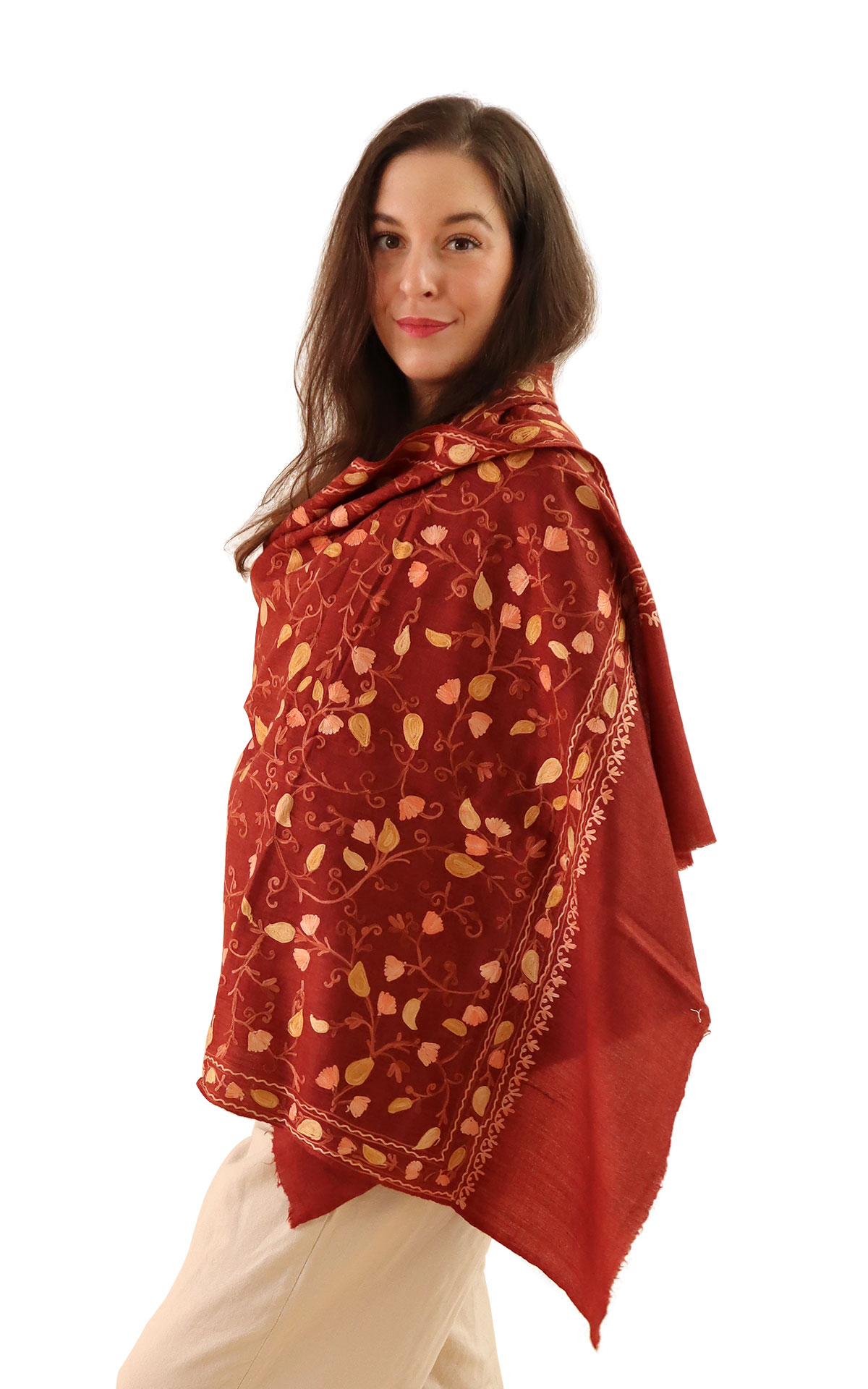 100% Fine soft wool scarf with original Kashmiri embroidery.
