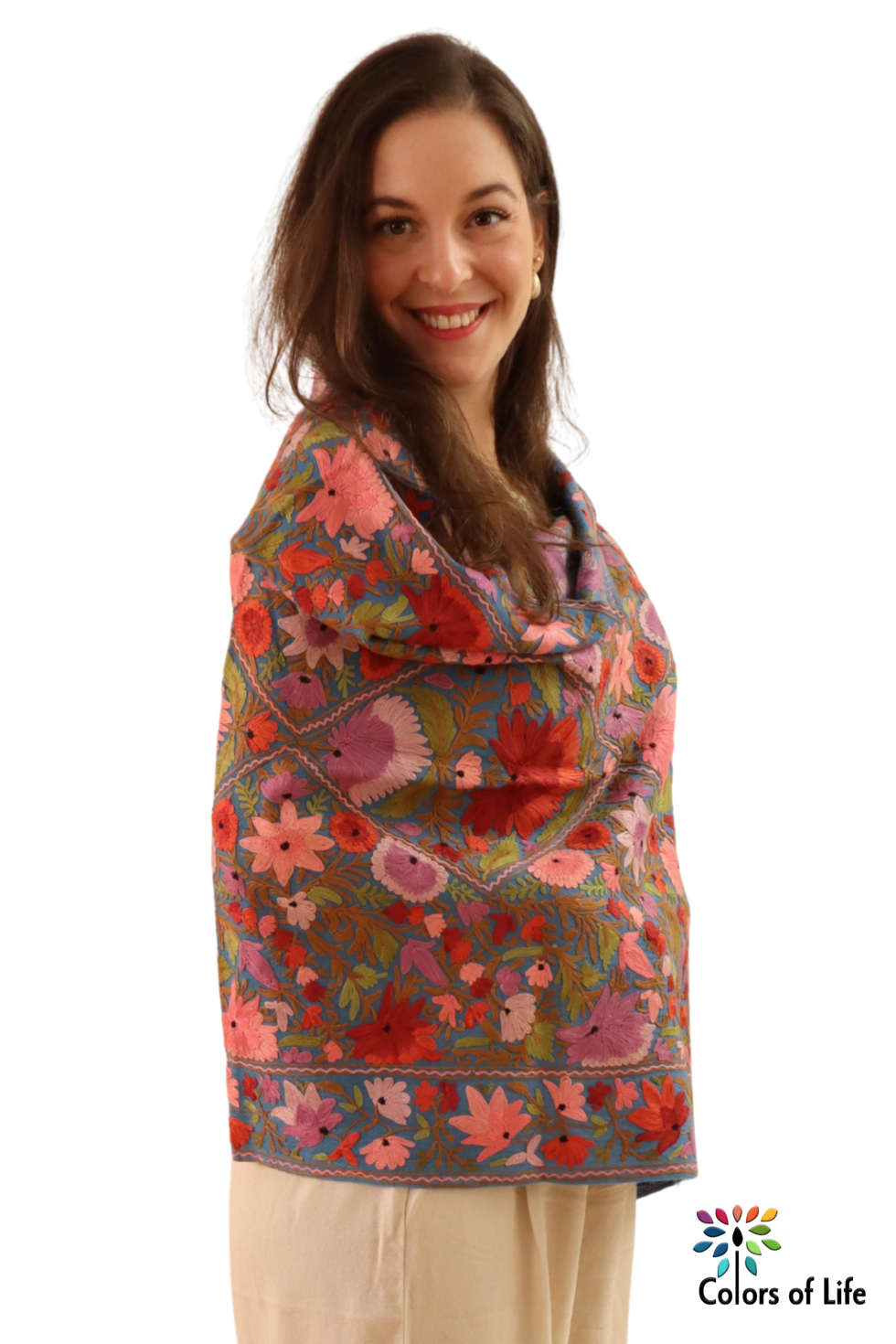 100% Fine soft wool scarf with original Kashmiri embroidery.