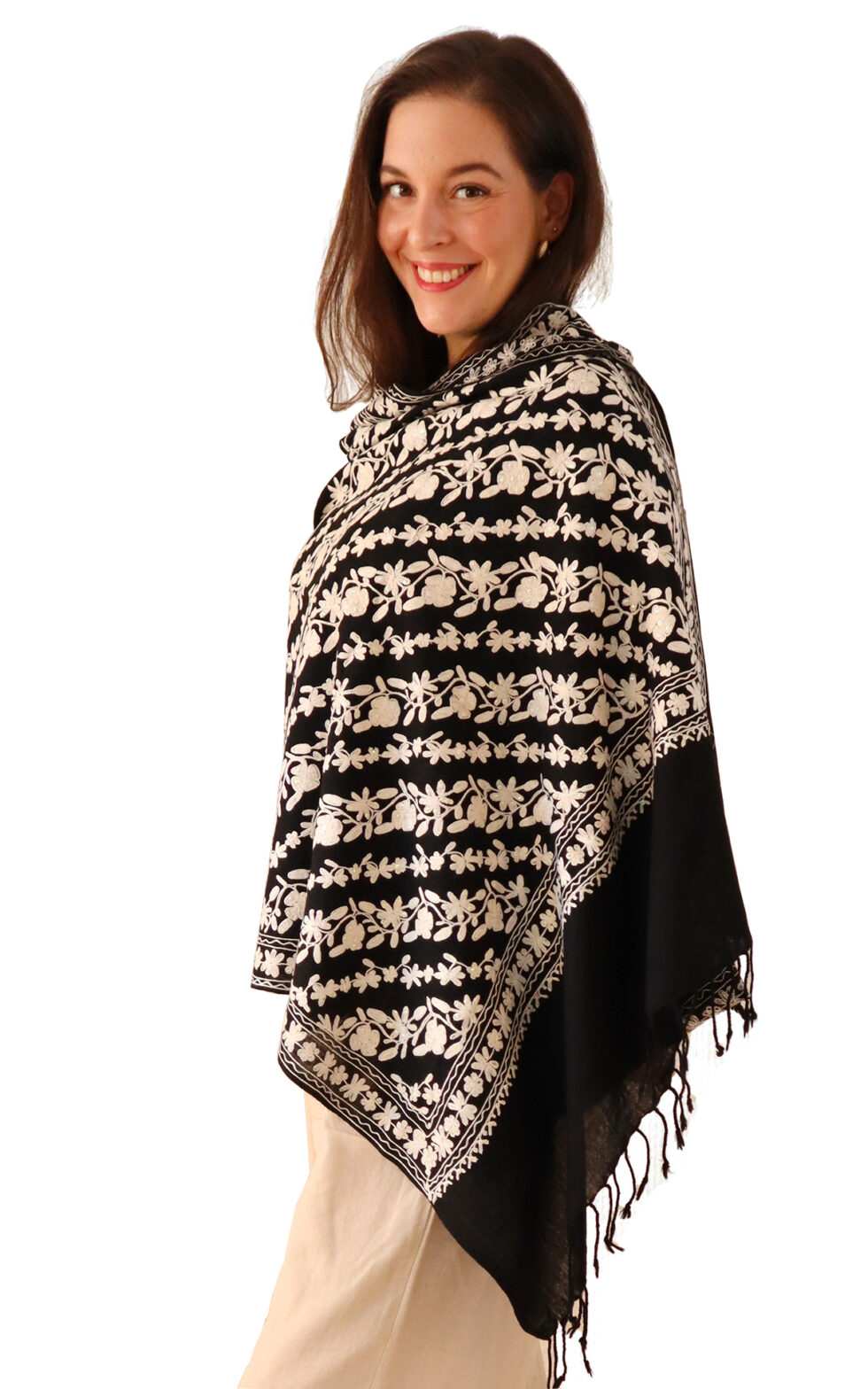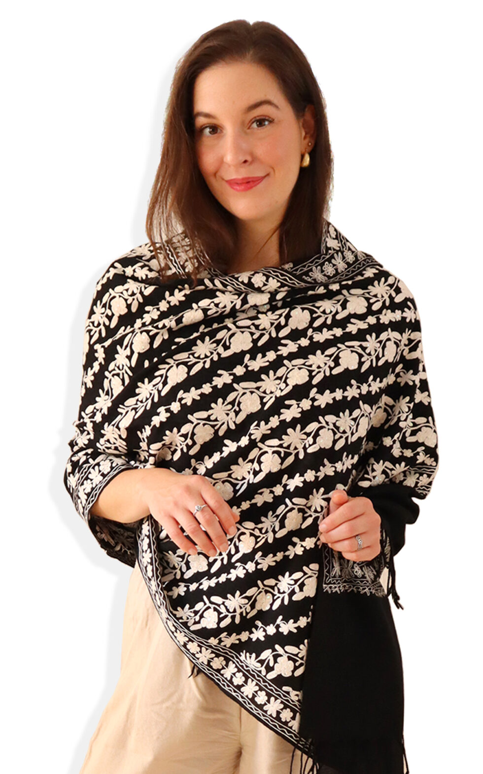 100% Fine soft wool scarf with original Kashmiri embroidery.